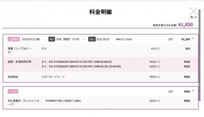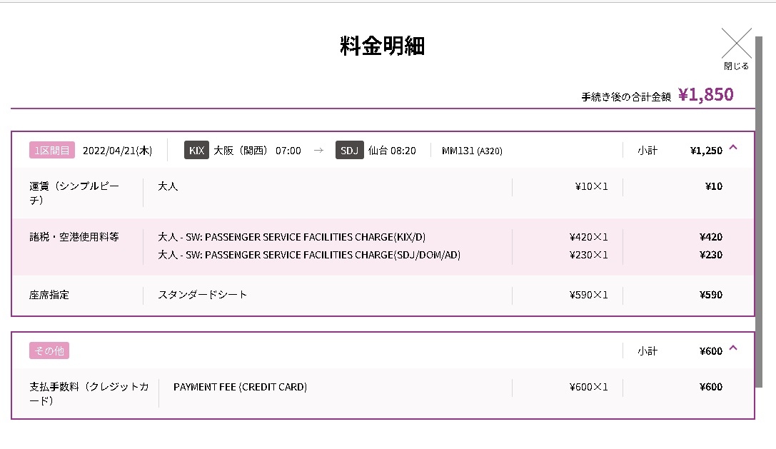 結局のところ、10円チケットとは言え、空港利用税やクレジット手数料や座席指定を含めると1,850円チケットになるのですが、、、、