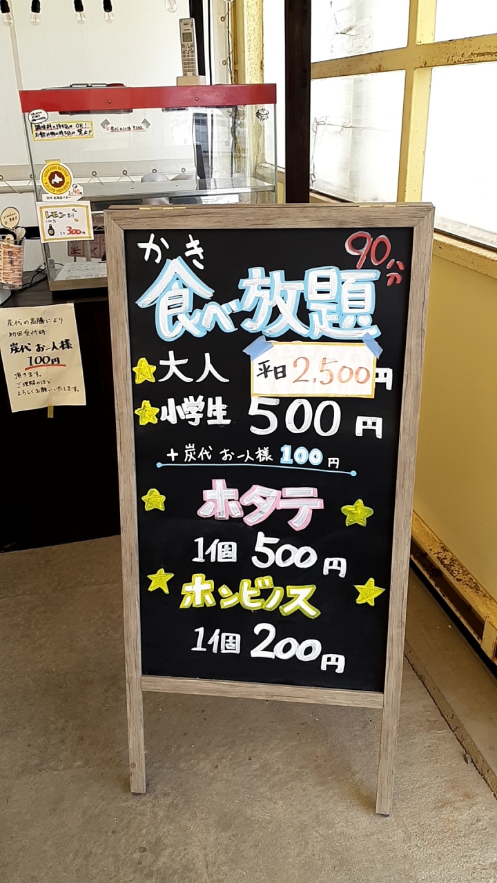 最初に会計をする形です。かきの食べ放題は90分限で平日大人2500円。