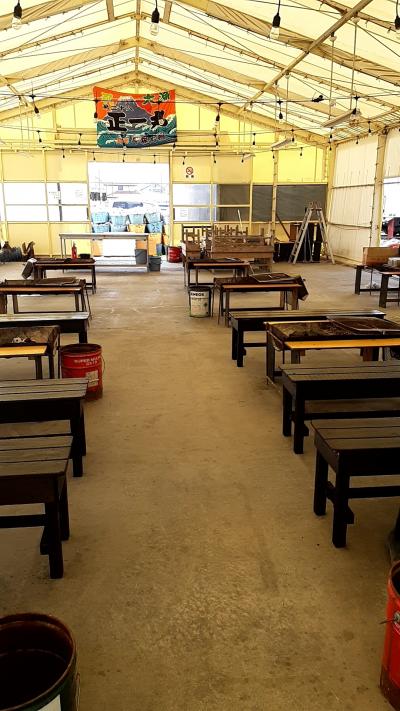 お店は大きなテントの中のバーベキュー場のような雰囲気。