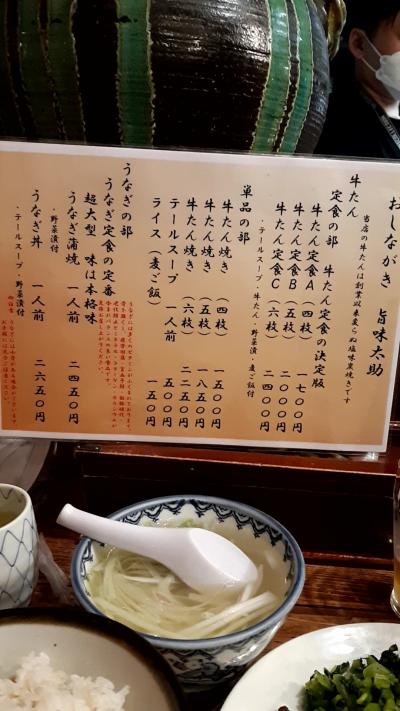 牛タン定食は、牛タンの枚数でA,B,Cとあるが、一番少ない4枚のA定食でも十分です。値段も1700円とリーズナブル。麦ごはんとテールスープがセットになっています。