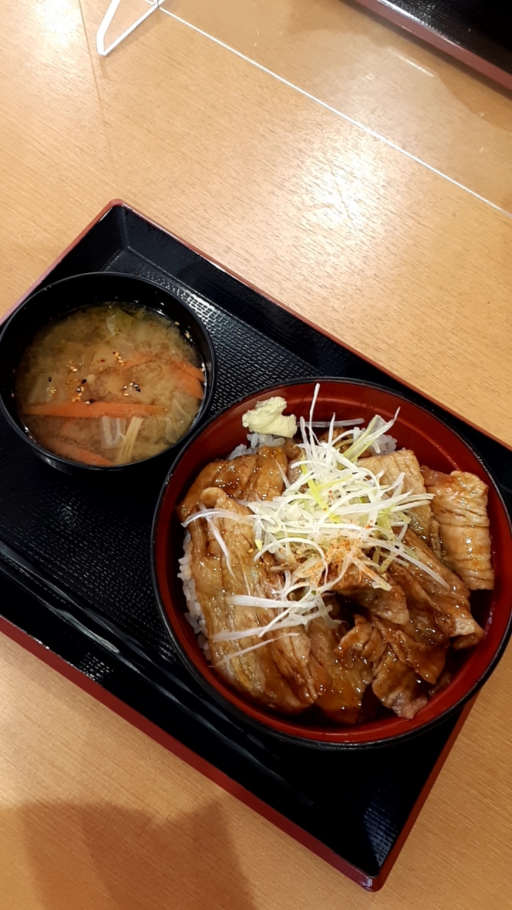 昼食は施設の中のフードコートで取りました。T氏おススメのポーク丼を注文。量も多くて美味しかった。- 旅行時期