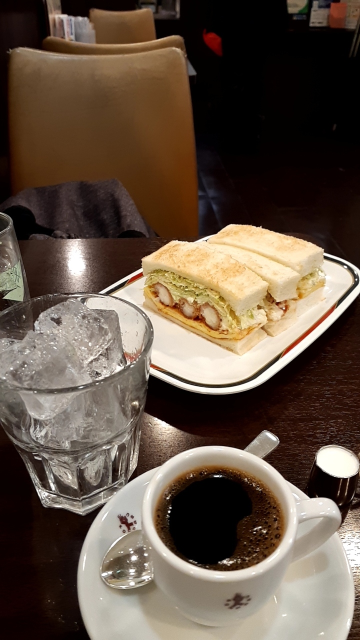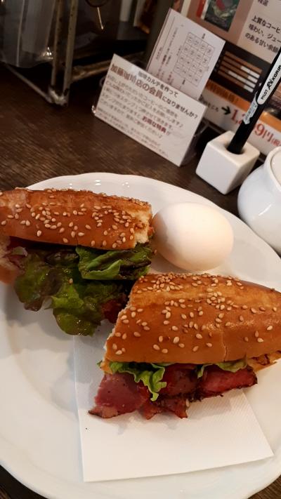 珈琲はペーパードリップされたサーバーのまま提供。実質コーヒーカップ2杯分に、ジャーマンサンド。これでセット料金:550円は安いですね。さすが名古屋モーニング。
