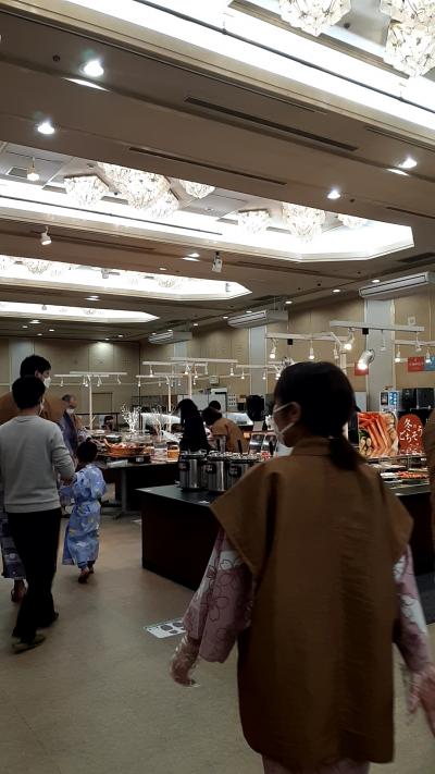 食堂では朝夕とも2部制にして、密にしないように配慮してましたが、、、ホテル宿泊客が多すぎて、あまり効果がないような。しかも、家族連れが多くて、とても騒がしかったのは残念でしたが、仕方なし。