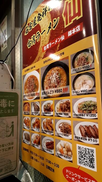 名古屋の錦地区にある台湾ラーメン屋さん。ホテルから歩いてすぐだったので夜食で入店しました。
