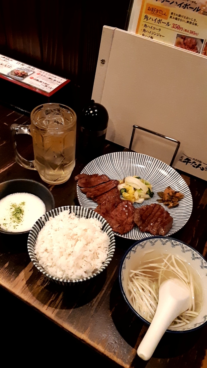 牛タン定食(牛タン2人前)+チューハイ(3,850円也)を注文。