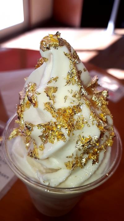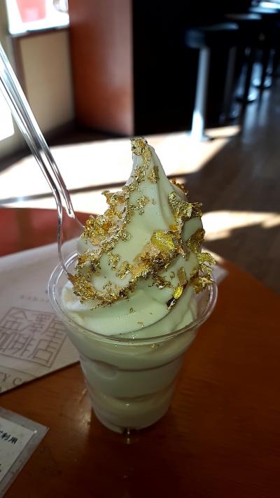 とりあえず、アイスコーヒーを注文。メニューの中に金箔ソフトクリームがあったので、ついでに注文。