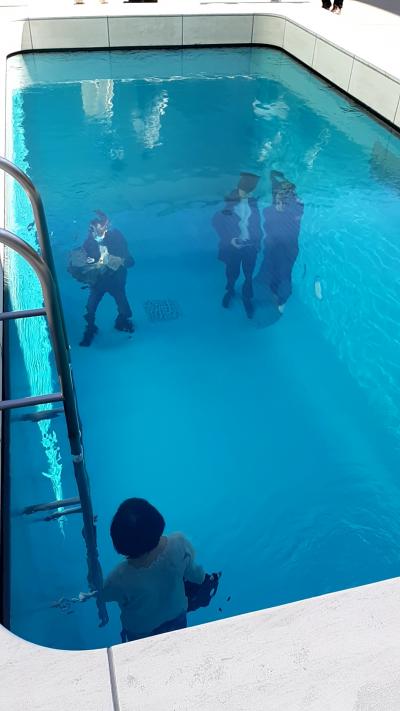 上からもプールは見えますが、プールの中の見学者がいて、それなりにすごいと思うが、誰もいなけれりゃ単なるプール。わざわざ数時間待って入るようなところではなく、断って正解であった。