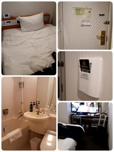 バスルームも狭いが、2Fに大浴場があるので、そちらを利用すれば問題ないが、この時期サウナ使用禁止になっていたのが残念。