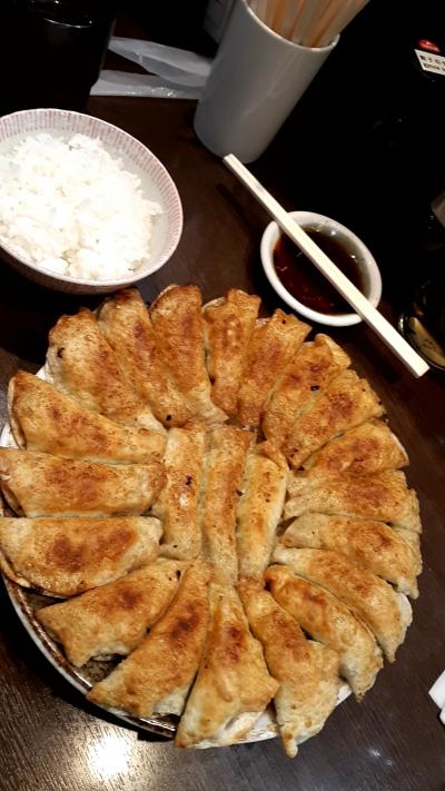 餃子自体は皮が肉厚で、油で揚げられているので、結構お腹が張りました。朝ご飯のせいもあって半分でギブアップ。ダメ元で店員さんに相談すると、快く持ち帰り用に包んでくれました。持ち帰り分は帰りの空港のラウンジで食しましたが、、、、結構臭いがきつく、電車移動ではかなり気を遣いました、、、