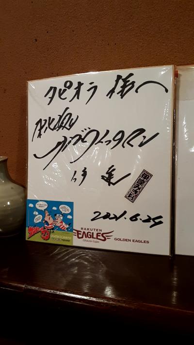店内には、楽天の選手や、サンドイッチマンなどのサインが飾られていました。