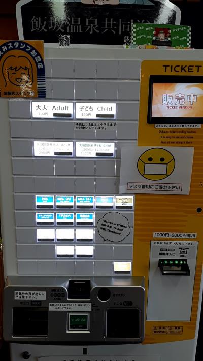 受付は地下1Fへ。券売機があるので、大人入泉料:300円、タオル:250円を購入。
