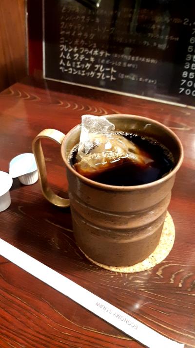 平日9時からの開店直後に入店したら、他に客はなし。カレースパゲティとドリンクセット(アイスコーヒーとサラダ):970円を注文。