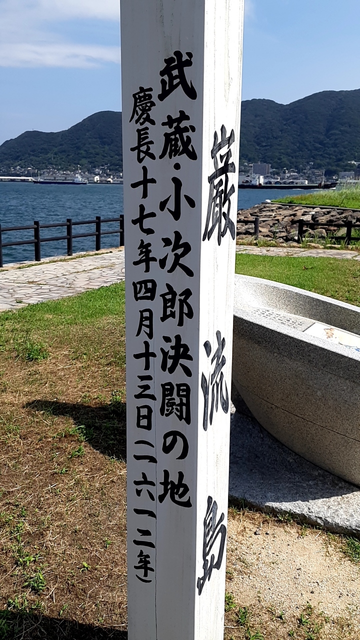 巌流島には高速艇で約10分程度で到着しますので、案外近いところにあって、下関側や門司側の景色が丸見えで、少し拍子抜けの感があった。