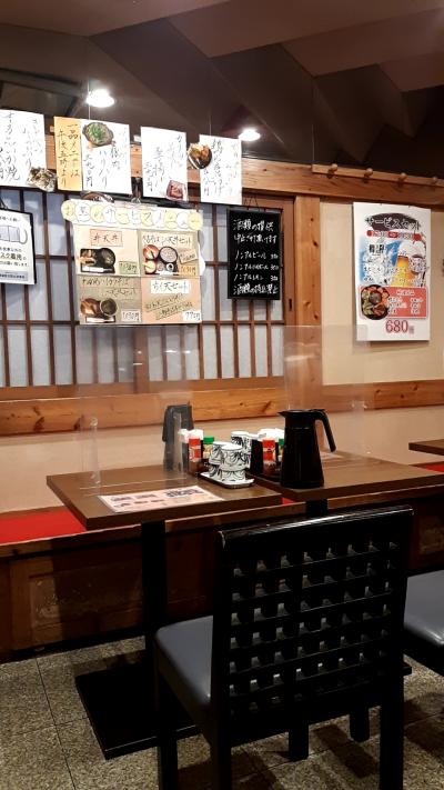 店内は立ち食いオンリーかと思ったら、奥にはきちんとコロナ対策でパーテーションもきちんと設置したテーブル席もありますので、ゆっくり食事ができますよ。- 旅行時期