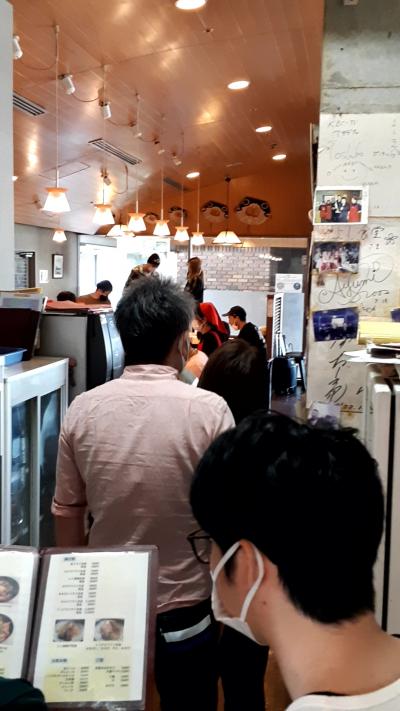 席に案内されると、テーブルにはアクリル板はないですが、席飛ばしで座る形でソーシャルディスタンスを確保してました。なので、行列待ちがあったんですね。