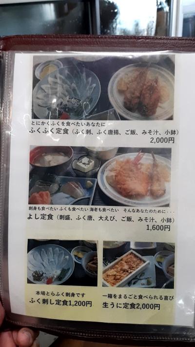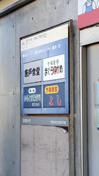 下関の唐戸市場の2階にある有名な食堂です。他にも数軒食べ物屋がありますが、ここが一番人気のようです。