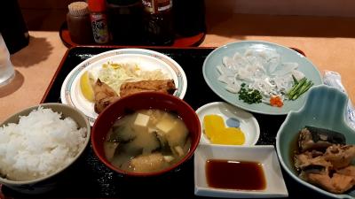 定番は、「ふくふく定食」2000円也。てっさ、ふぐから揚げ、魚の煮込み等、男性でも十分まんぷくになると思います。
