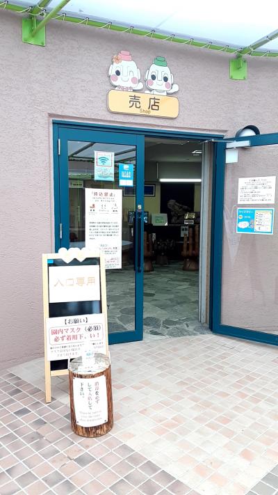 メインの施設は白い円形の建物で、昔はドライブインだったそうな。レストランでは食事、お店ではお土産物が買えます。