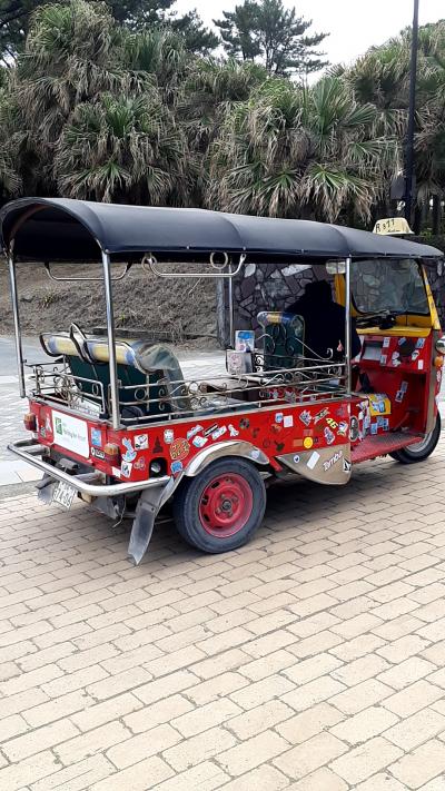 青島の中央に神社があり、島にかかる橋を渡って参拝できます。有料(寸志)のトゥクトゥクでも行き来できるようです。