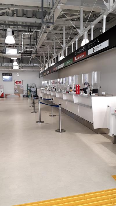 熊本空港は、現在、改装工事中らしく、空港ターミナルは仮設ターミナルで、LCC専用ターミナルのような雰囲気。