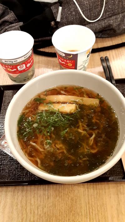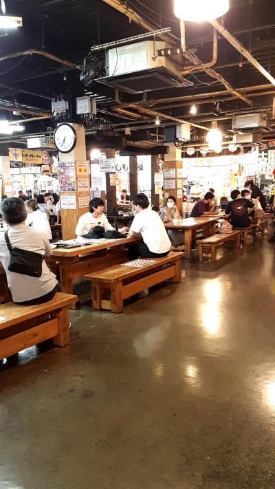 混みあっていたので、端っこの方で何とか席を確保して、買い食いしました。