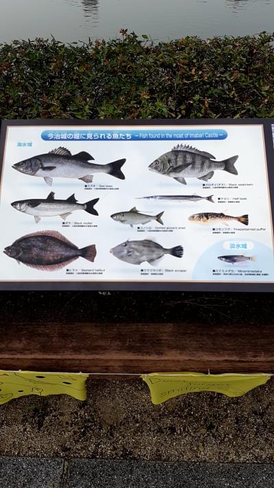 「今治城」のお堀は、海上交通の要所らしく、海から堀へ直接船で入ることができるそうで、海を最大限活用した城で、日本三大水城の一つに数えられています。なお、お堀は海と通じており、お堀の中には、淡水魚と海水魚が一緒に生息しているそうです。- 旅行時期