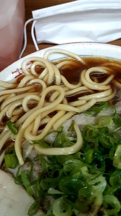 初めてだったので、1.5倍の大盛りにしましたが、出てきてビックリ。全部食べるのに一苦労しました。ラーメンはちゃあしゅうが全面にトッピング。麺は太麺ストレートの中華麺。結構モチモチしていて食べ応えありです。