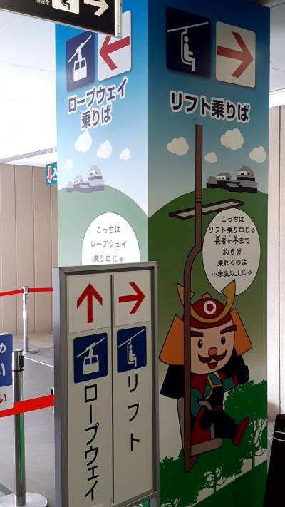 驚いたのは、山頂にあるお城まで、ロープウェイやリフトがあること。参道もありますが、そんな体力ありません。