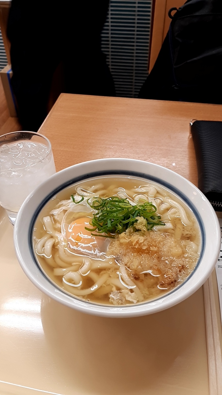 月見饂飩が300円でお釣り。出汁は関西風であっさりとして美味い。体が温もりました。- 旅行時期