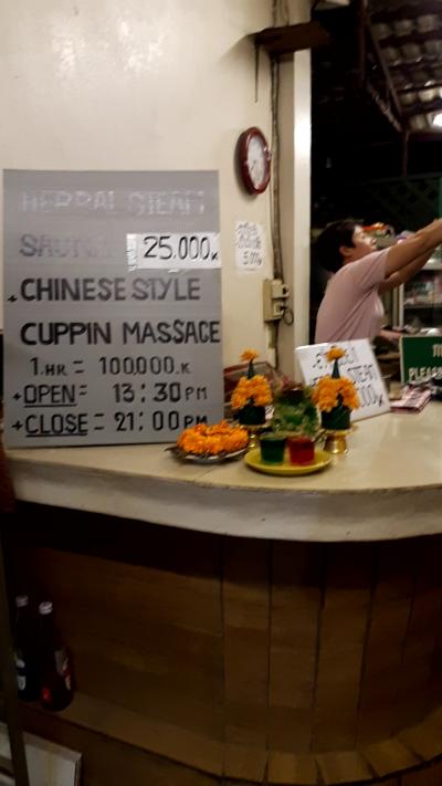 なお、市内には他にもハーブスチームサウナの穴場があります。値段も20000Kip。施設も、男女別々のサウナ室があり、この店よりも清潔感がある。