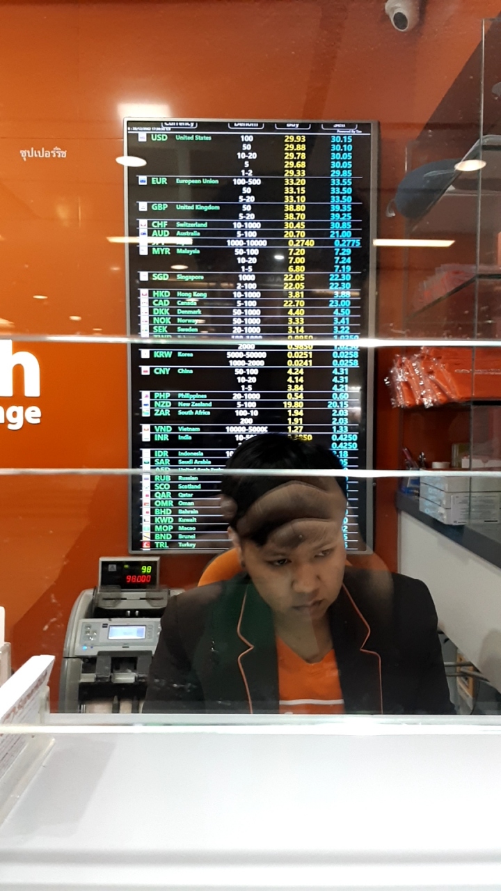タイ・バンコクのスワンナプーム空港でトランスファー時間があったので、地下のARL駅近くにあるこの両替屋に立ち寄りました。