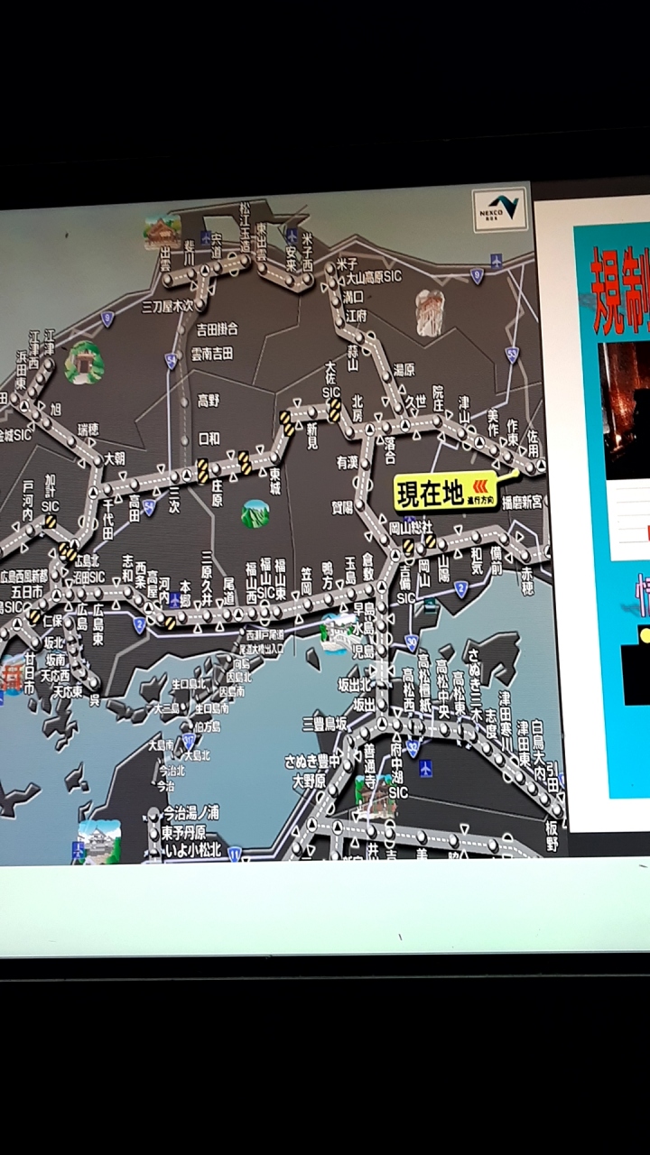 岡山から四国へ移動するために「岡山道」から「瀬戸中央道」へ入り、瀬戸大橋に差しかかった。