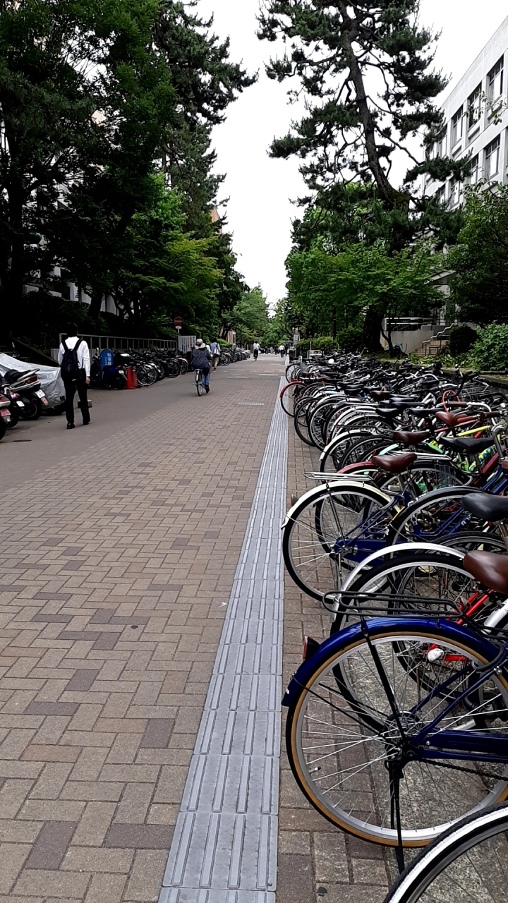 キャンパス内では学生のチャリンコだらけ。どこの大学も一緒ですね。
