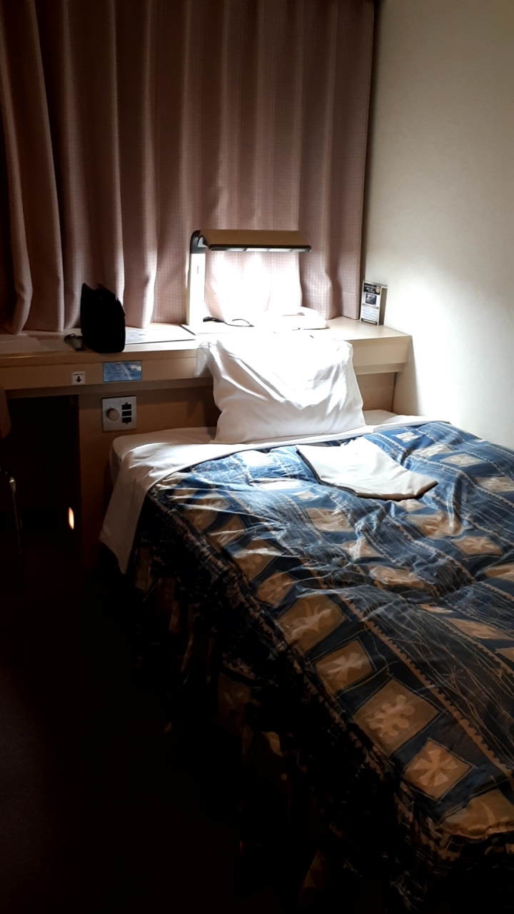 部屋はとても狭い。寝るだけと割り切らないといけない。一応ユニットバスにはバスタブが入るが、大人の男が入るには狭すぎる。
