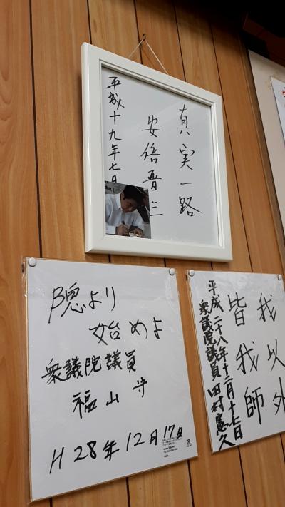 店内には、壁に有名人のサインが所せましと貼られてました。安部首相のサインも飾られてました。