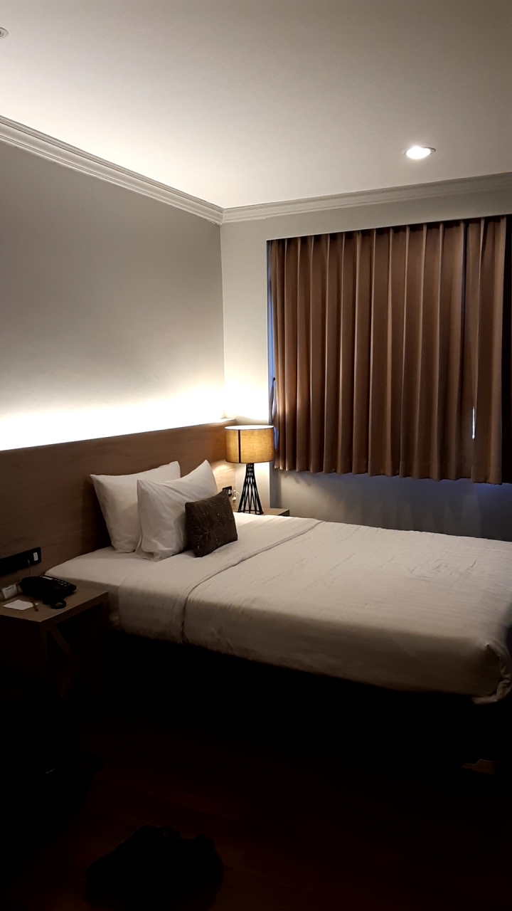 ホテルの部屋は、窓ありの方が開放感あるが、窓のない部屋も多いのですが、部屋内に時計もあって、時間感覚はなんとか保つことができる。