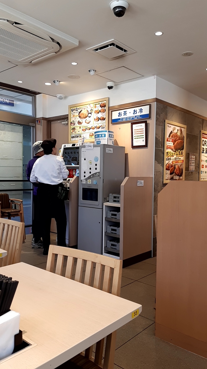 店内に入って、券売機にて先に食券を購入。今回は、とんかつ定食が500円と超安かったので注文。