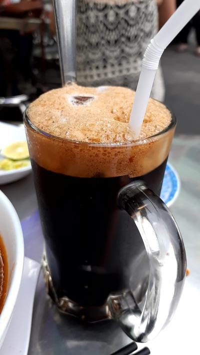 アイスコーヒーのシェークを中もしたが、中に冷えたコーヒーゼリーがゴロゴロ入っていてとても美味しい。59,000ドン(約295円)也。- 旅行時期