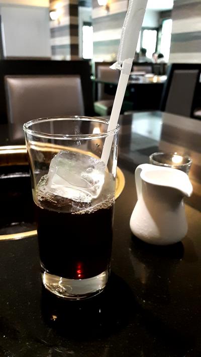 1Fのカフェに入って、店員に聞いてみると、ここはドリンクだけと言われ、アイスコーヒーだけ飲んで、退散。