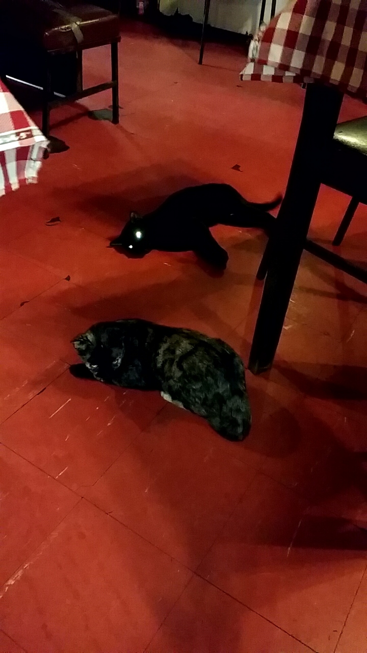 ここのサバステーキが良いとのことでしたが、店に入るとオバサンと猫2匹。お客は一人もいません。