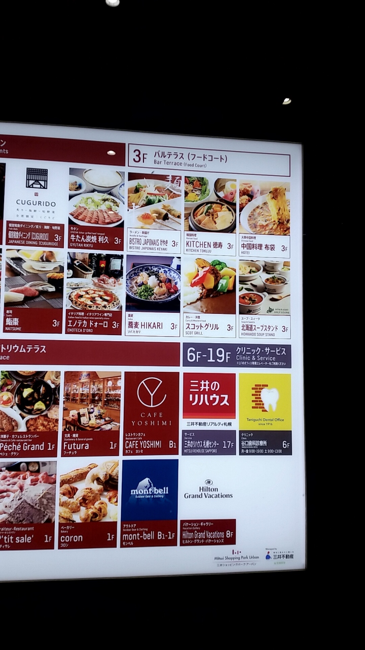 今回は、レストラン街を利用するだけで時間がなくなったのですが、、、「新しい感性と出会う、札幌の中庭」がコンセプトらしく、それぞれ特徴のある階で構成され、お洒落な雰囲気の商業ビルです。