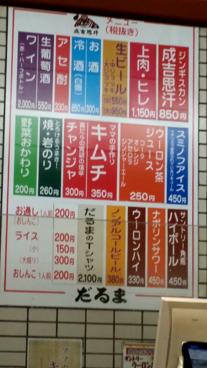 札幌へ到着した初日の夜、どうしてもジンギスカンが食べたいので、事前にネットで調べていた「だるま」へ行くことにしました。