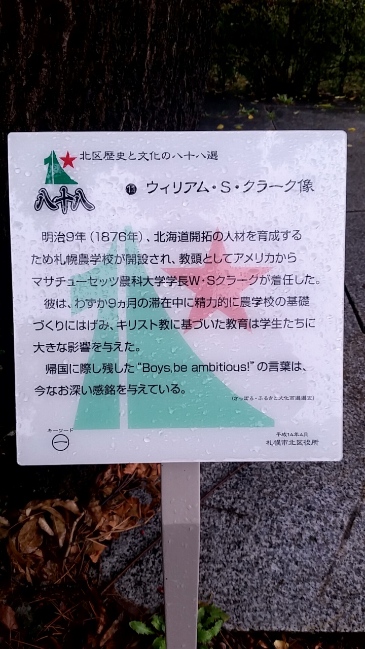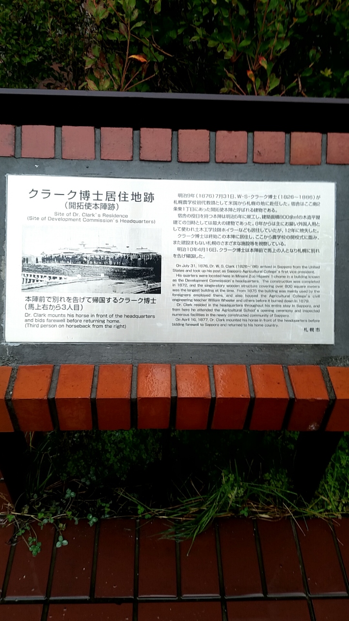 何となく横をすぎる時に、ホントに何気なく小さな碑に目をやると、なんとクラーク博士の居住地跡とのこと。