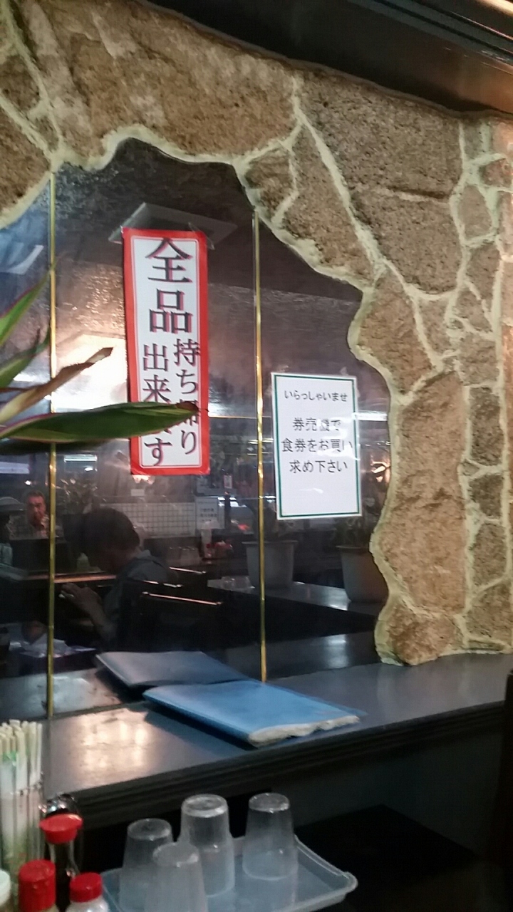 店内の奥に券売機があるので、先に食事券を購入して、好きな席に座るって形です。