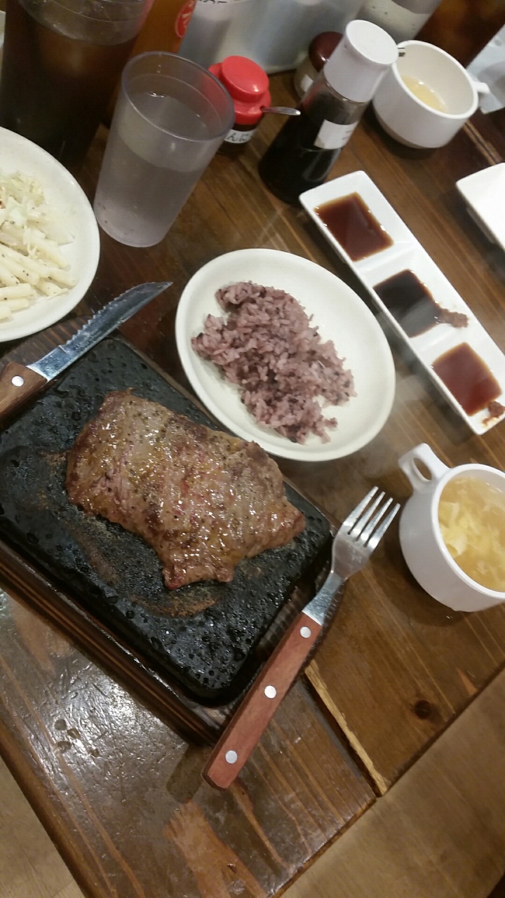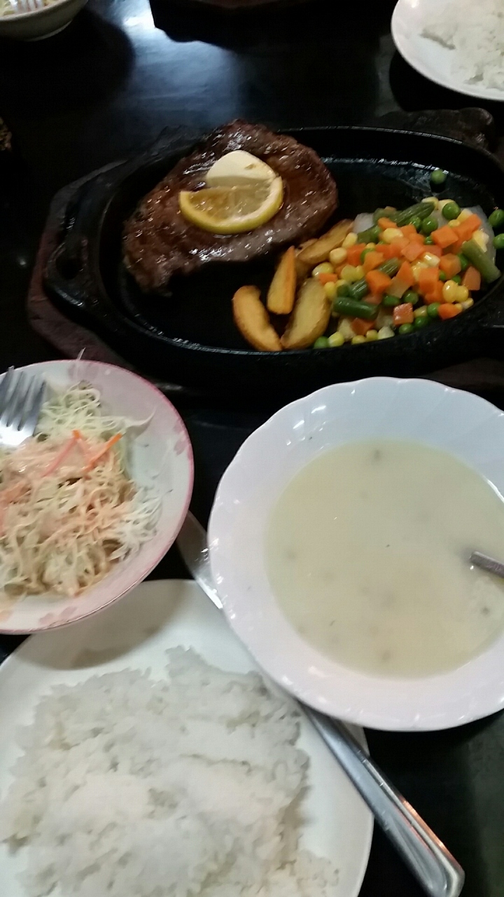 ステーキ定食が安くて注文しました。ちょっとお肉は硬めでしたが、値段を考えるとコスパは良いと思います。