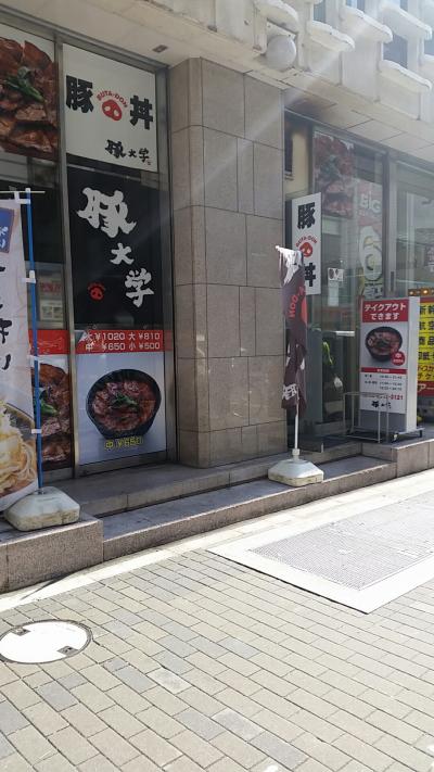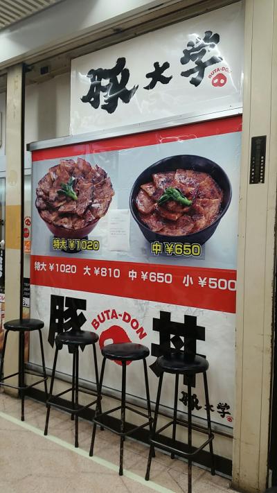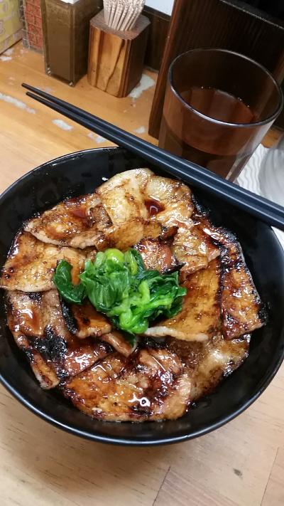 店名のとおり、豚丼の専門店です。人気店のようだったので、お昼過ぎに行ったのですが、店内は満席で、3人ほど並んでいました。