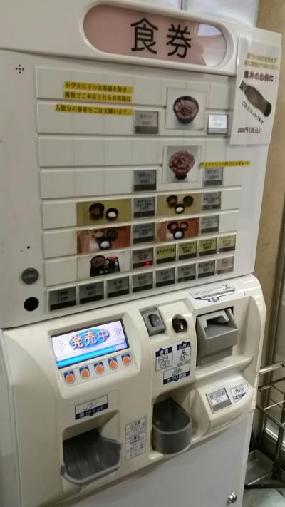 基本、行列してまで食事する気ゼロなんですが、、、折角来たことだし、3人なら許容範囲内ということで、店に入ったところにある券売機にて、豚丼の中サイズのチケットを購入。。。