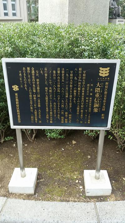 でも、さすが都内の大学、土地の制限があるためか、高層建物の校舎がたくさんあって、相対的に大隈重信の像が小さく見えました、、、