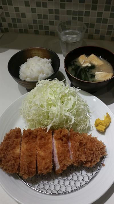 入口にある券売機にて食券を購入します。トンカツのセットが、味噌汁のみついてて1,400円。ご飯は別売りで、半ライス100円なので、〆て1,500円也。