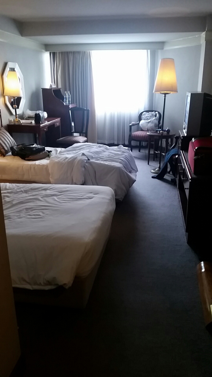 部屋は最上階6Fのダブルルームで、部屋もバスルームもそこそこ広かったが、お湯の出がいまいちだったのが残念。